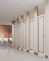 แผ่นกั้นห้องน้ำสำเร็จรูปชนิด Laminated Foam Board 30 mm. โครงสร้างเป็นแผ่นโฟมบอร์ดชนิด PVC โฟมบอร์ด ความหนาแน่นไม่น้อยกว่า 500 กิโลกรัม/ลูกบาศก์เมตร มีคุณสมบัติไม่ดูดซึมน้ำ ไม่เป็นเชื้อรา ไม่ลามไฟ ป้องกันแมลง มอด ปลวก ได้รับรองมาตรฐาน มอก.2356-2550 และผ่านการทดสอบการลามไฟ ปิดผิวทั้ง 2 ด้านด้วยแผ่น HPL (High Pressure Laminate) ซึ่งได้รับการรับรองมาตรฐาน มอก.1163-2536, Green Label จากประเทศสิงคโปร์, การทดสอบการลามไฟ และการทดสอบแอนตี้แบคทีเรีย (สีมาตรฐาน) ปิดขอบรอบด้วย Edge color สีกลมกลืนกับผิวหน้าโดยใช้ Hot Melt Glue Edging Machine ซึ่งจะทำให้ขอบแผ่นนั้นมีความแน่นหนา ยากต่อการหลุดลอก ความหนาสำเร็จรวม 30 มม. โดยบานประตูของรุ่น AXLE CURV VEIL จะใช้บานพับซ่อนอยู่ในประตูทำให้ไม่เห็นบานพับอยู่ภายนอก อลูมิเนียมขอบประตูมีความโค้งเพื่อบังการมองเห็นจากภายนอกแทนการใช้สักหลาด ทำความสะอาดง่ายขึ้นและลดการสะสมของเชื้อโรคและแบคทีเรีย อุปกรณ์ต่างๆ ผลิตขึ้นจากสแตนเลสและอลูมิเนียมซึ่งมีคุณสมบัติไม่ขึ้นสนิม มีความทนทาน ใช้ได้อย่างยาวนาน